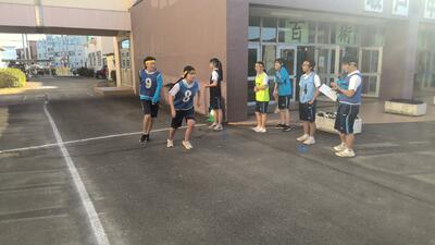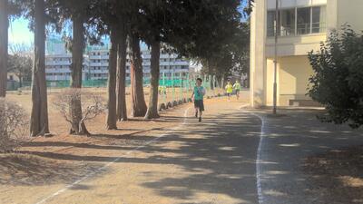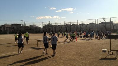 グランドを出発、中継、ゴール地点に、750mを基本にグランドから校舎裏、テニスコートから正門を回りグランドに戻るコースでした。
