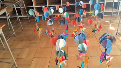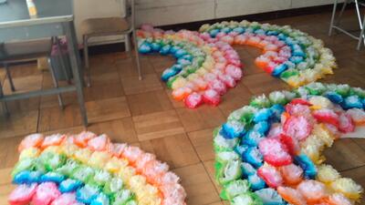 創作劇?に使う道具や、飾りつけの制作をしていました。