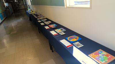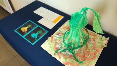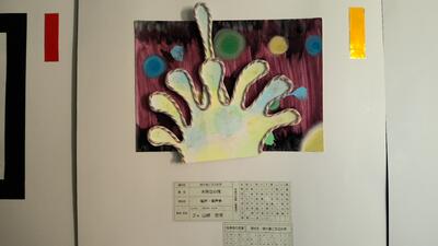 ※写真はAB通路に展示してある児童生徒美術展への出展作品です。