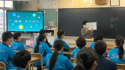 本日は、いつもの朝読書の時間に、1年生対象にボランティアさんによる読み聞かせがありました。図書委員会が企画してボランティアさんに協力をおねがいしている活動です。