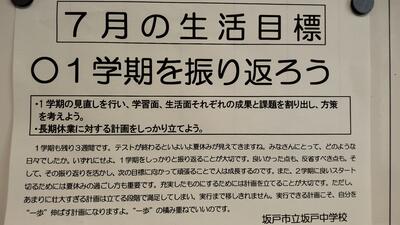 7月になりました。終業式まで19日です。蒸し暑さに負けずに頑張りましょう。