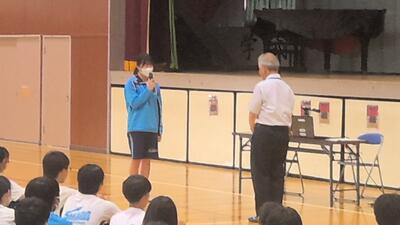 生徒は暑い中でしたが、集中して話を聞けていました。最後に生徒会長からお礼の言葉と生徒全員から感謝の意を込めて拍手が送られました。