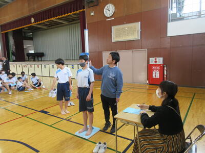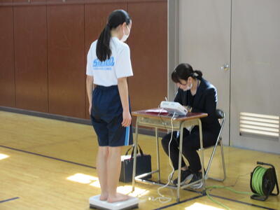 体育館で身長、体重を