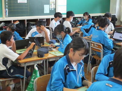 各学級とも4人組でクラスに割り振られた見学場所の候補地を調べ、自分たちのグループがどこを本格的に調べるか相談していました。自然と楽しい雰囲気になりますね。