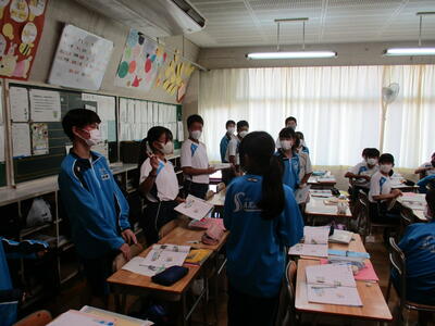 大事な表現や本文を、英語→日本語、日本後→英語と素早く言い換える活動をゲーム形式で行っていました。