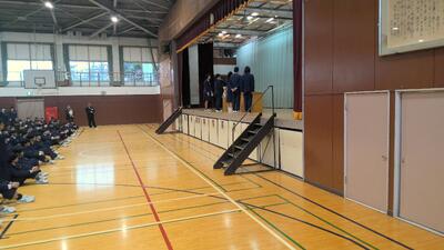 学校朝会を行いました。底冷えもする中でしたが体育館で行いました。