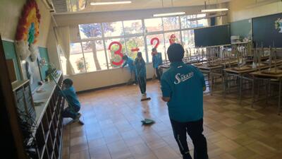 午後の時間は1,2年生による卒業式の会場や3学年の使う場所の清掃を行いました。