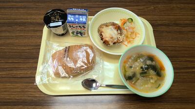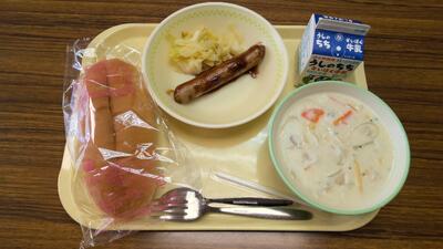 【今日の給食】牛乳、味噌カツサンド、米粉のクリームスープ